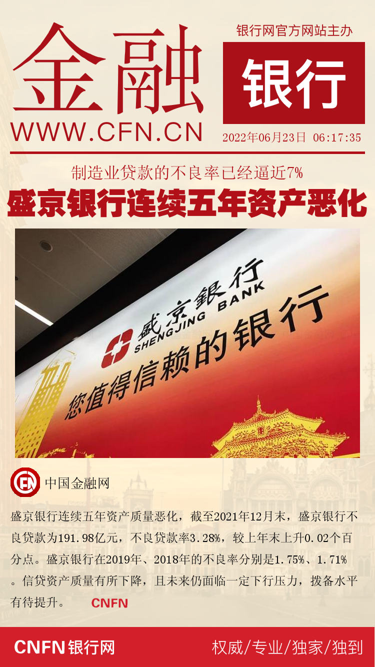 盛京银行连续五年资产恶化